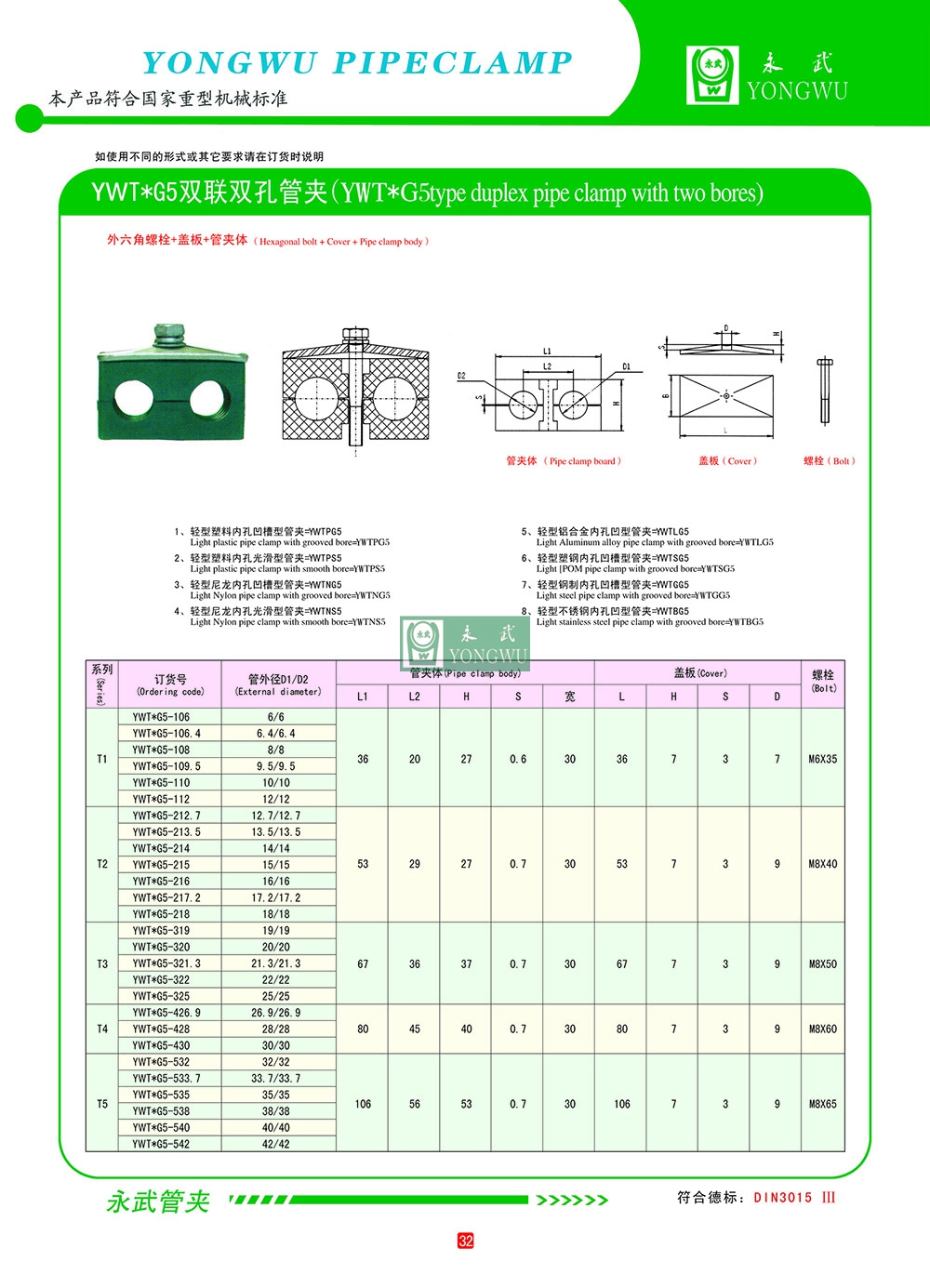 YWT*G5双联单螺栓管夹