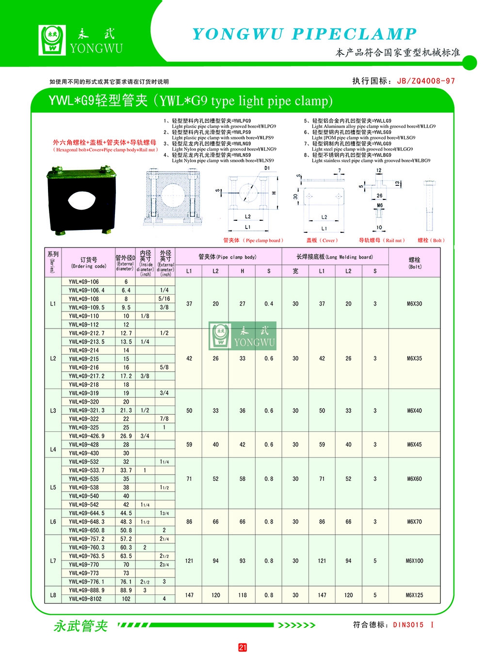 可根据要求定制规格加工,产品广泛应用于冶金、船舶、海洋工程、重型机械、工程机械、机床、电力、造纸、化工、液压系统等工业领域。主要产品有U型管夹、钢制管夹、扁钢管夹、铝合金管夹、船用管夹、塑料管夹、重型管夹、轻型管夹、防震管夹、液压管夹、管道配件等24个系列产品。