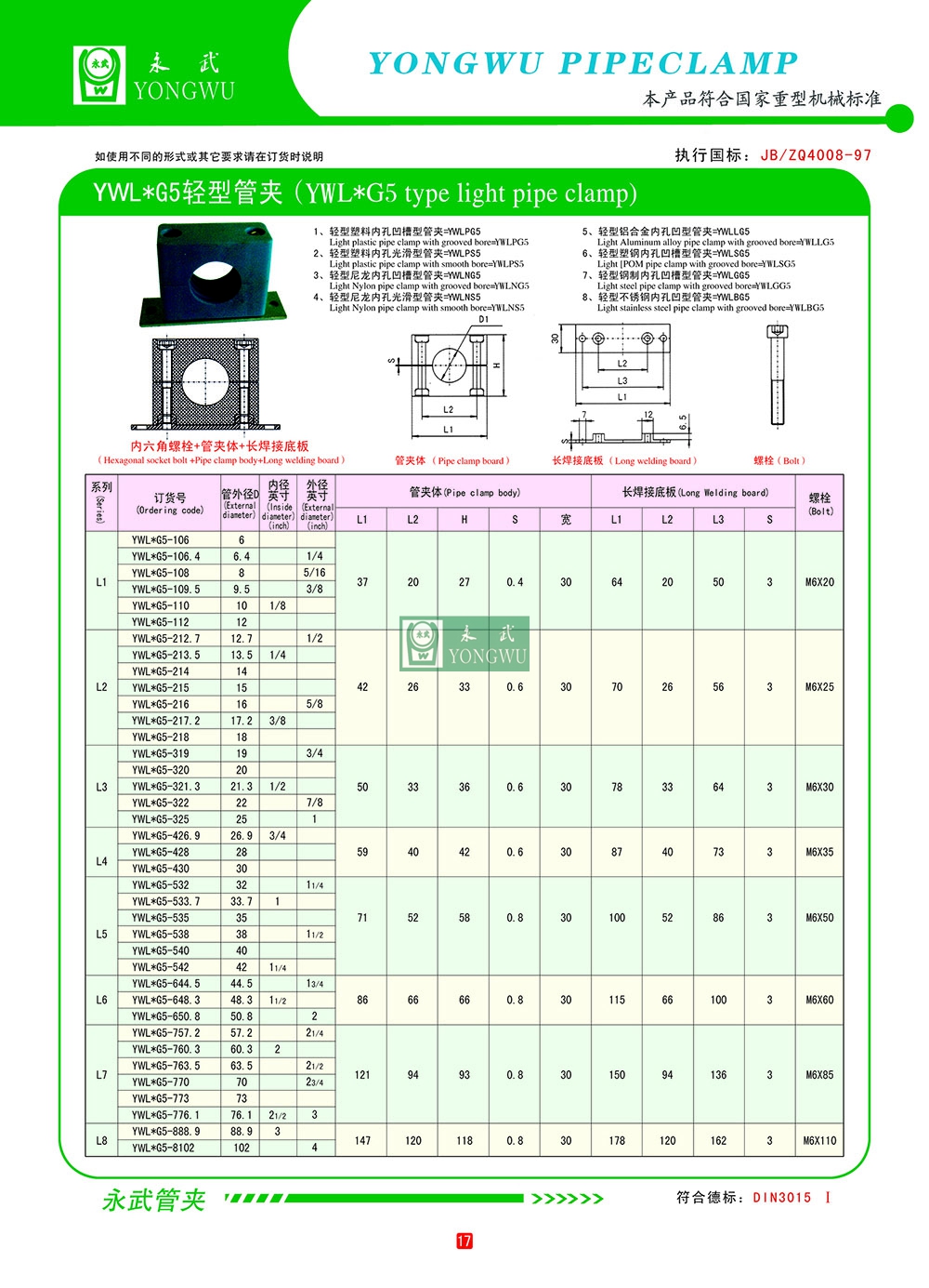 可根据要求定制规格加工,产品广泛应用于冶金、船舶、海洋工程、重型机械、工程机械、机床、电力、造纸、化工、液压系统等工业领域。主要产品有U型管夹、钢制管夹、扁钢管夹、铝合金管夹、船用管夹、塑料管夹、重型管夹、轻型管夹、防震管夹、液压管夹、管道配件等24个系列产品。