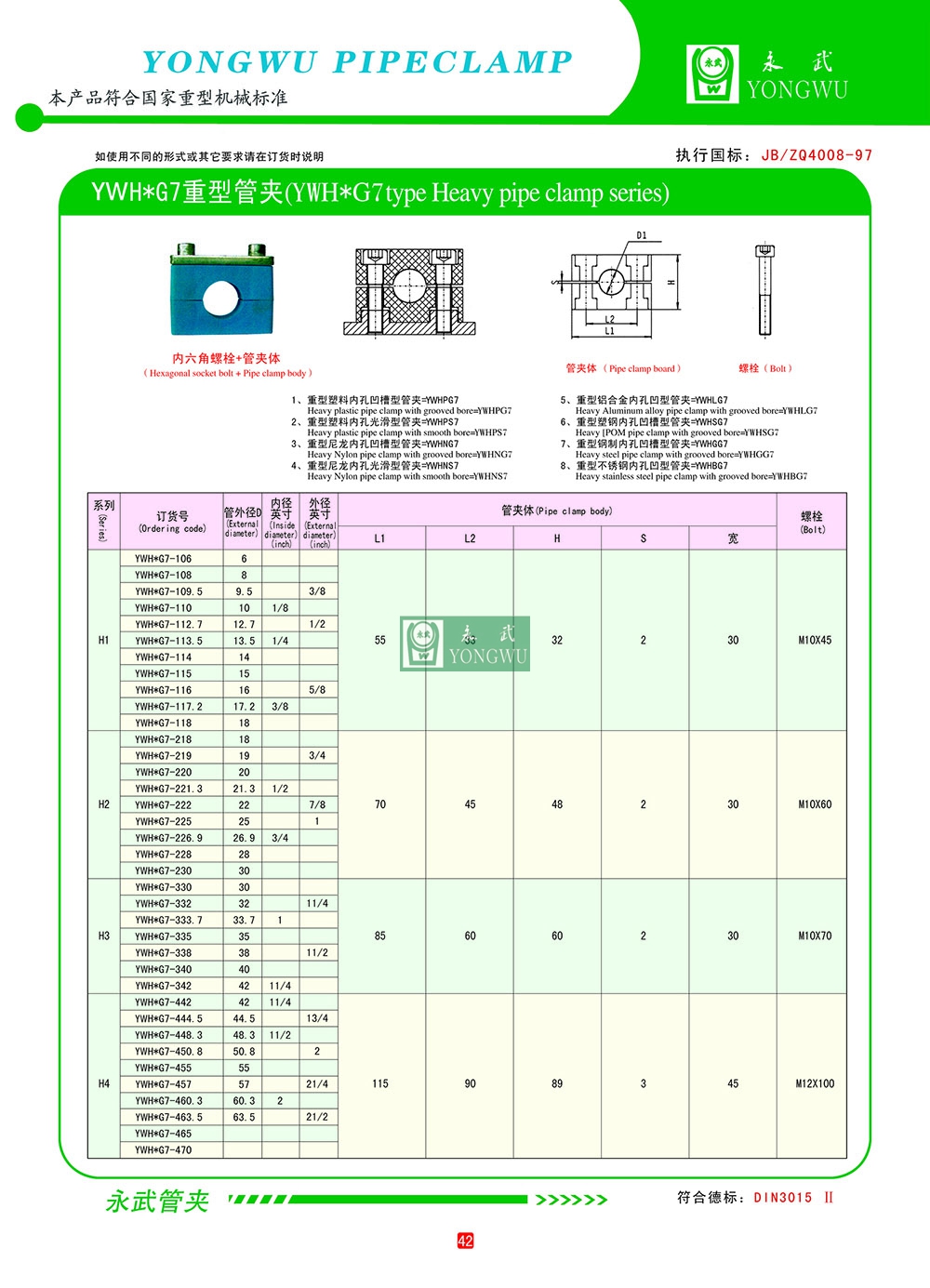 可根据要求定制规格加工,产品广泛应用于冶金、船舶、海洋工程、重型机械、工程机械、机床、电力、造纸、化工、液压系统等工业领域。主要产品有U型管夹、钢制管夹、扁钢管夹、铝合金管夹、船用管夹、塑料管夹、重型管夹、轻型管夹、防震管夹、液压管夹、管道配件等24个系列产品。
