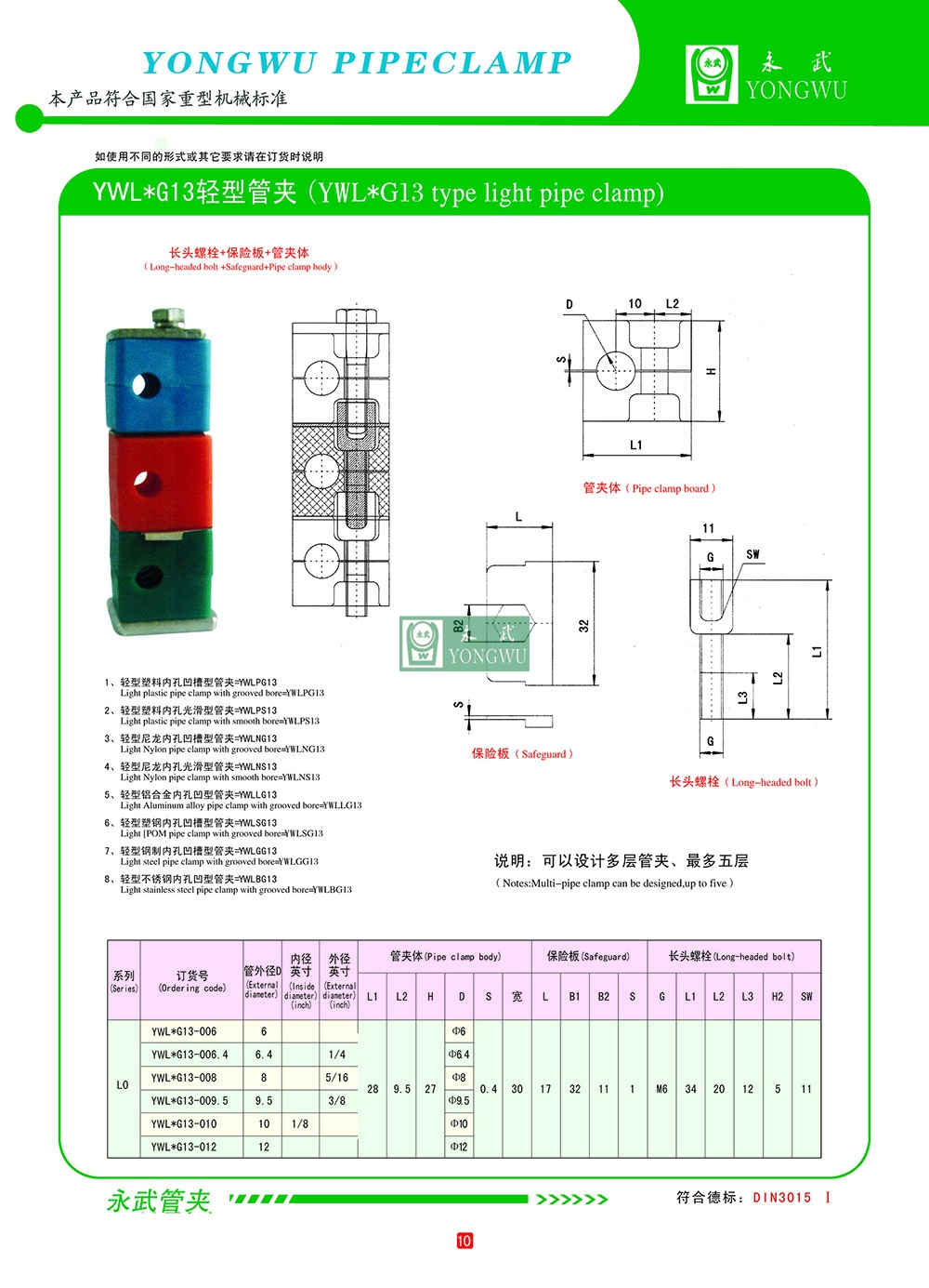可根据要求定制规格加工,产品广泛应用于冶金、船舶、海洋工程、重型机械、工程机械、机床、电力、造纸、化工、液压系统等工业领域。主要产品有U型管夹、钢制管夹、扁钢管夹、铝合金管夹、船用管夹、塑料管夹、重型管夹、轻型管夹、防震管夹、液压管夹、管道配件等24个系列产品。