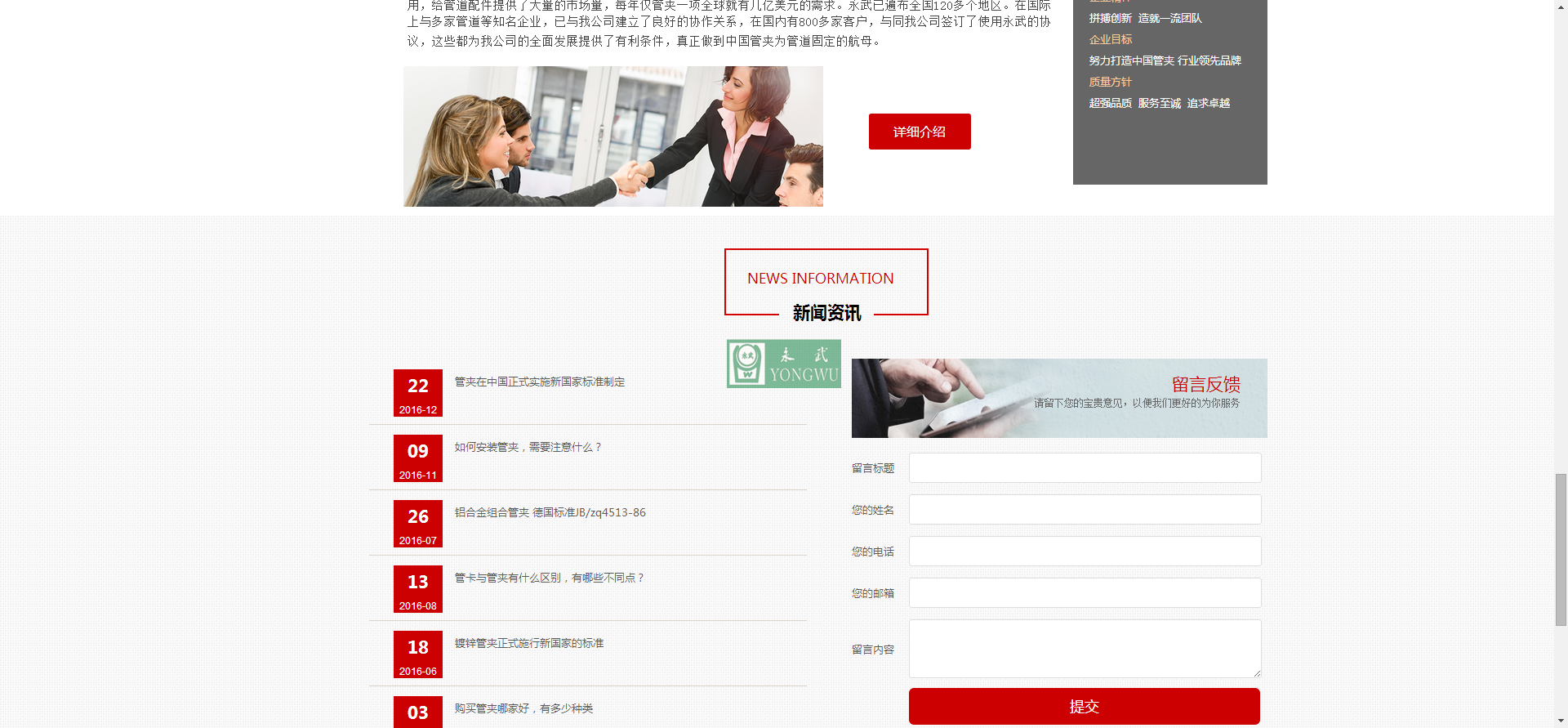 盐城永武管夹企业网站重新改版上线!